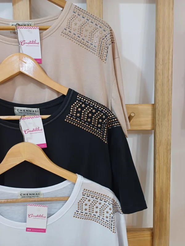 Remera con brillos en los hombros