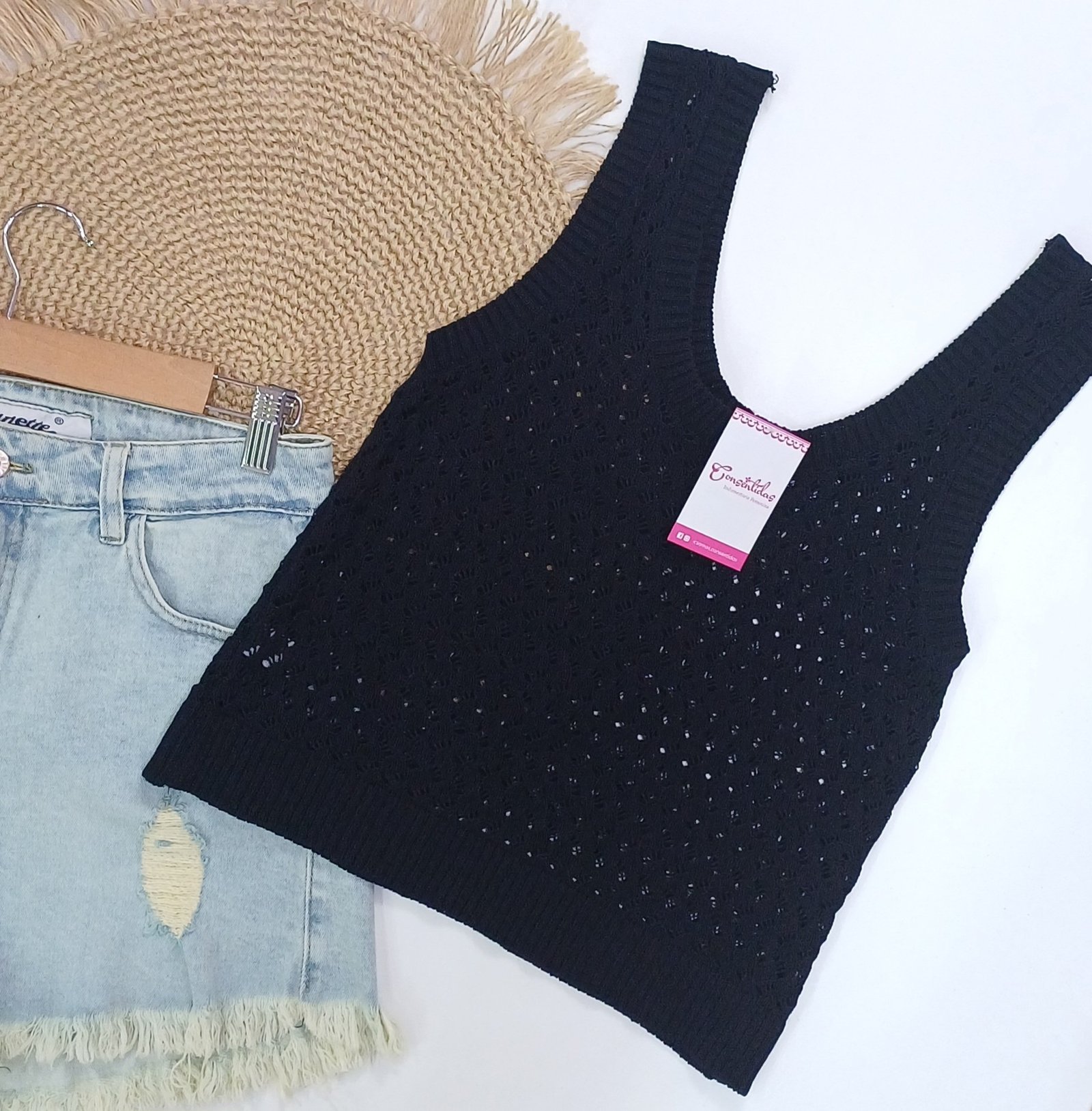 Su trama calada le da ese toque delicado y moderno que levanta cualquier look. Ideal para usar sola o combinar con blazer, camisa abierta o denim.