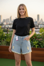Short de Jeans color óxido, súper canchero y elastizado, con roturas que le dan mucha onda. Tiro alto, disponible en todos los talles. Ideal para lookearte con estilo y comodidad.